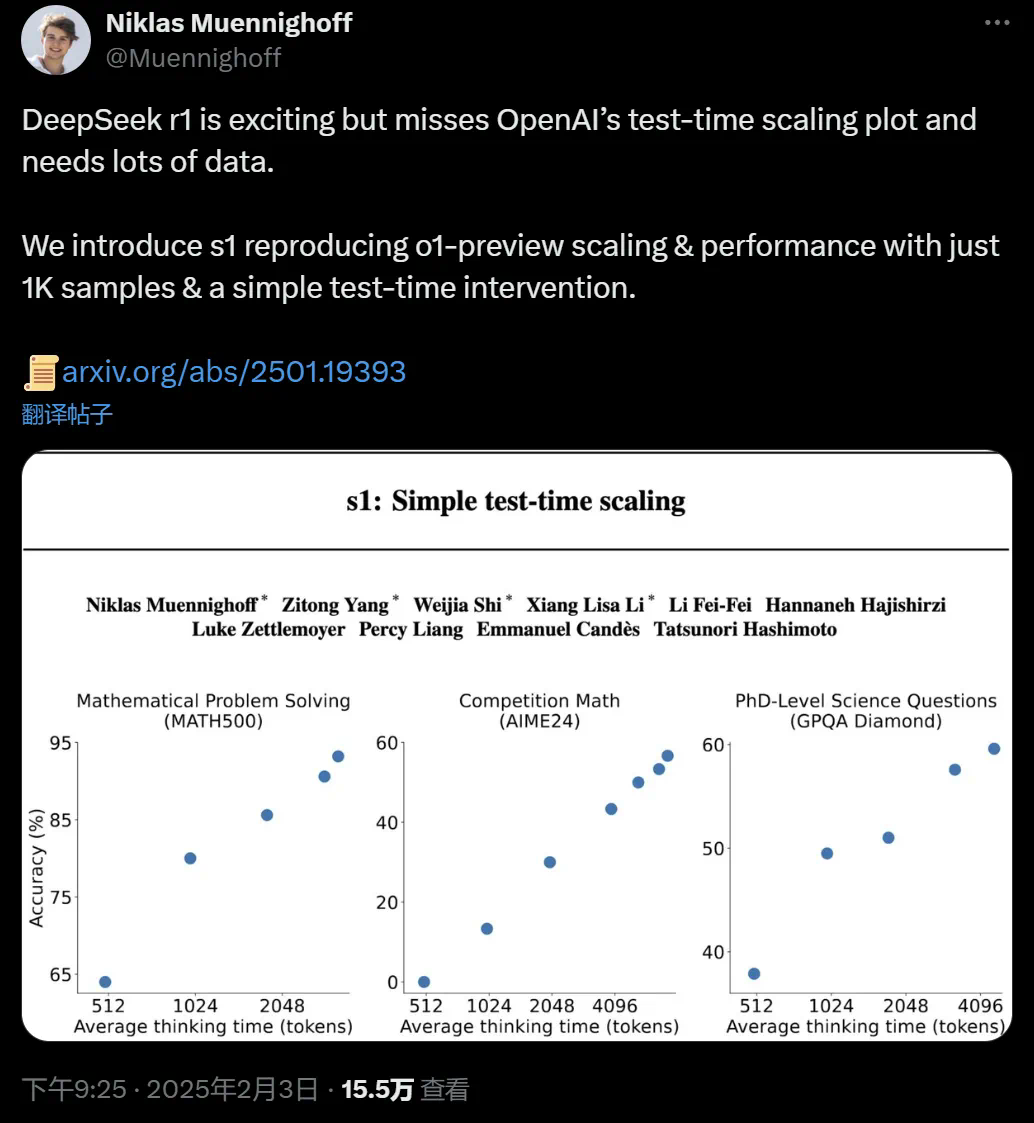 文章来源于互联网:训练1000样本就能超越o1,李飞飞等人画出AI扩展新曲线