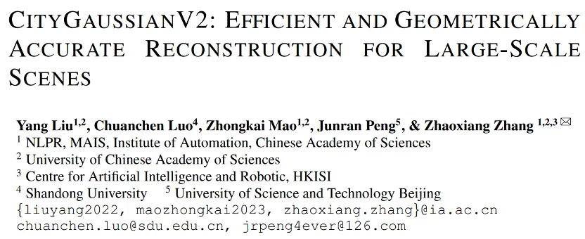 论文题目:CityGaussianV2: Efficient and Geometrically Accurate Reconstruction for Large-Scale Scenes