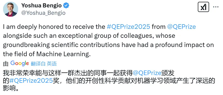 QEPrize 在相关文章中写到:「2025 年伊丽莎白女王工程奖授予七位工程师,他们为现代机器学习的发展做出了开创性的贡献,这是人工智能(AI)进步的核心组成部分。」之后,该文章简要罗列了每位获奖者的获奖理由: