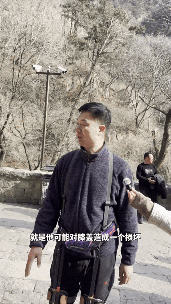 有大爷体验后称,「爬山的时候,好像它自动把你的腿抬起来,腿不费劲,比走平道感觉轻快。」