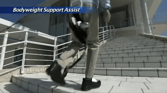 这款步行辅助器,可以对人体的部分体重进行支撑,减轻步行时的腿部负担,还可以辅助爬楼梯。