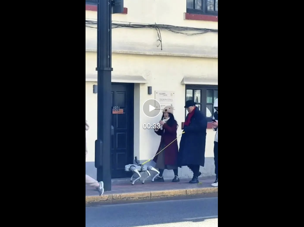 遛狗就遛狗吧,但上海街头有人遛起了机器狗,还特意拴了根绳并配有行狗记录仪。