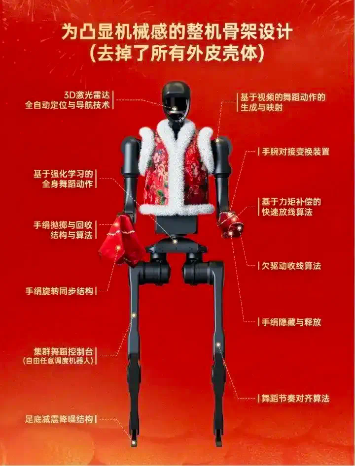 为了凸显机械感的整机骨架设计,表演时的 H1 去掉了所有外皮壳体。