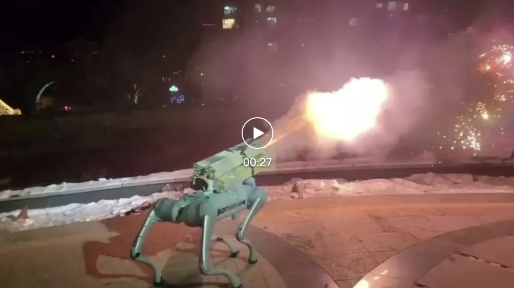 还有网友直接给机器狗绑上一捆烟花,场面也是异常壮观。