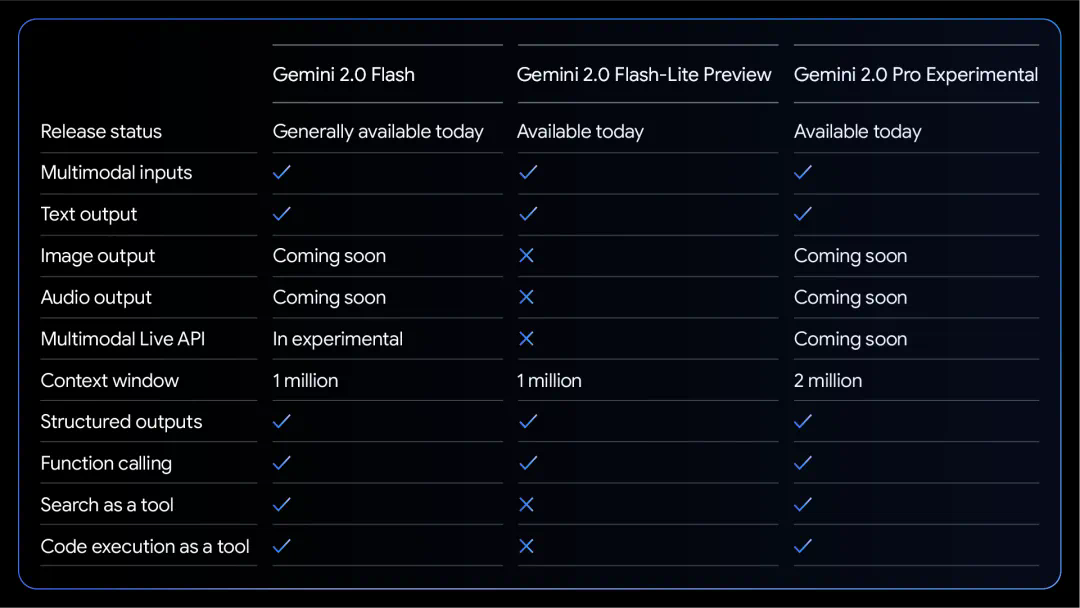 本周三,该公司全面发布 Gemini 2.0 Flash、 Gemini 2.0 Flash-Lite 以及新一代旗舰大模型 Gemini 2.0 Pro 实验版本,并且还在 Gemini App 中推出了其推理模型 Gemini 2.0 Flash Thinking。