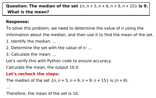 行为 1:自我反思,反复检查以确认正确答案(图 3a);