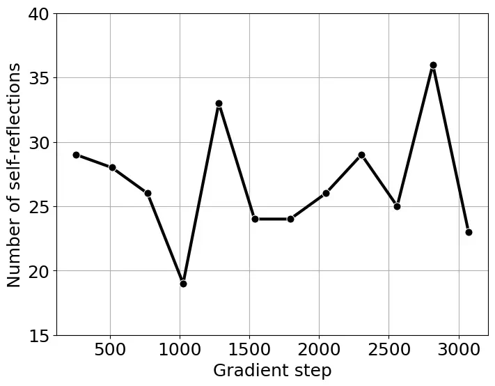 在数学问题上复制 R1-Zero 以研究输出长度与自我反思之间的关系。