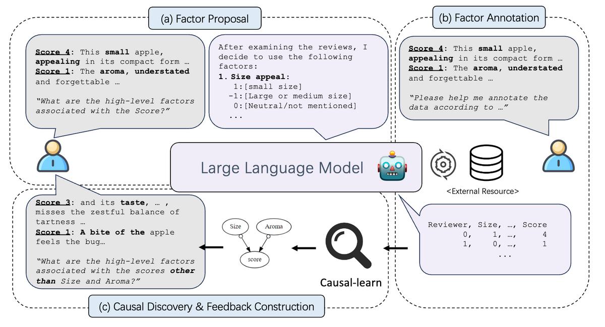 LLM 需要合适的 prompt 才能发挥作用,很难让其一次给出足够的高级变量。此环节的目的是基于因果发现的结果,通过反馈设计 ,寻找合适的信息,为下一轮迭代准备合适的输入,让 LLM 进一步给出合适的高级变量。