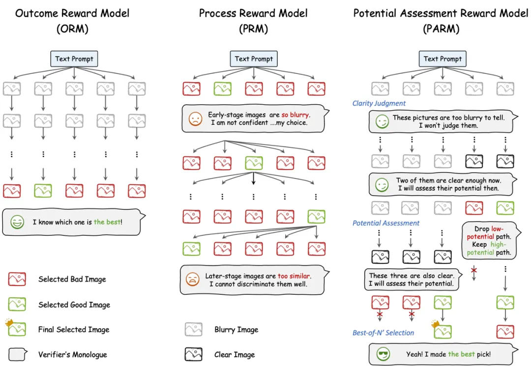 最佳选择(Best-of-N’ Selection):在高潜力路径中选择最佳的最终图像。