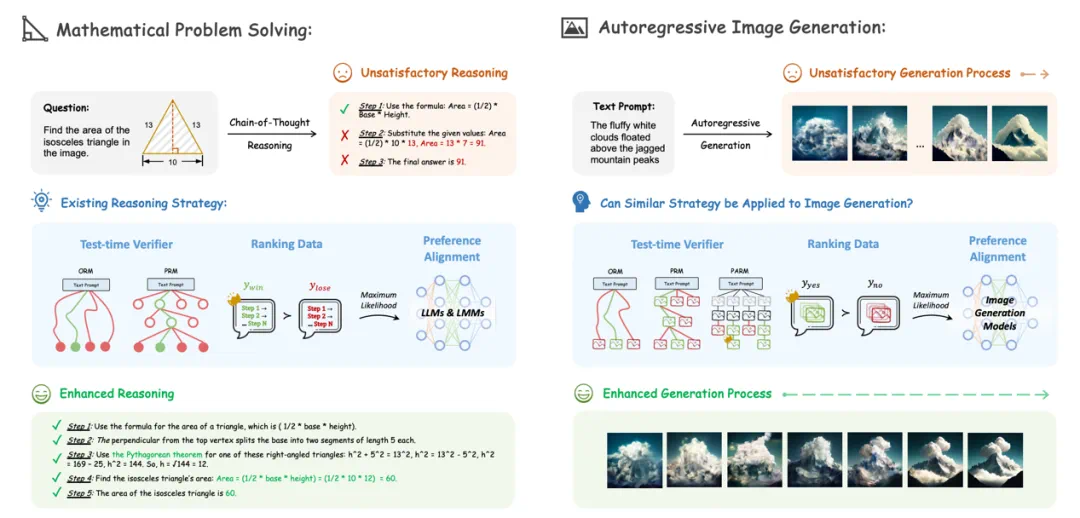 逐步解码(Step-by-Step Decoding):类似于 CoT 在数学问题上的逐步推理,自回归图像生成也可以逐步生成中间图像,并在生成过程中进行验证与优化。