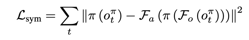 自然对称的运动行为可以最小化能量消耗的效率,并通过后天学习逐渐被人类掌握。具有高度仿生机制的人形机器人也具有对称的结构特征。然而,如果没有先验知识,对称形态信息很难被策略探索,尤其是对于产生多样化行为的策略。这使得最初的探索变得更加困难,使得策略很容易陷入局部最优,导致不自然的运动。为了利用这种形态对称的优势,研究者为人形机器人提出了镜像函数 F (・) 和对应的损失函数,以鼓励策略产生对称和自然的运动。