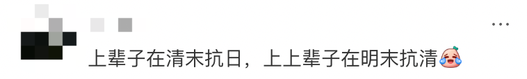 还有前世烧过河西走廊的、上辈子在清末抗日的、上上辈子在明末抗清的,真是世代忠良。