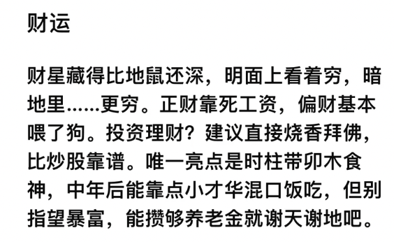 只要你去算,总有一句话能说中你,然后你就会觉得,诶,这玩意真准。