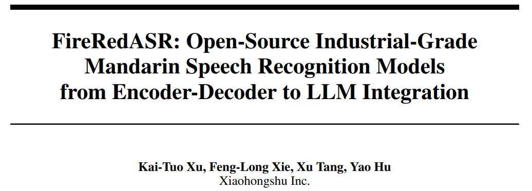 论文标题:FireRedASR: Open-Source Industrial-Grade Mandarin Speech Recognition Models from Encoder-Decoder to LLM Integration -