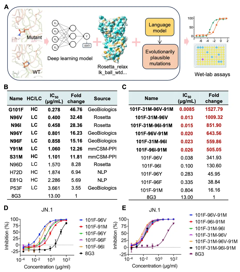 生成式 AI + 抗体工程:精准优化 8G3 抗体,中和活性提升 1000-1500 倍