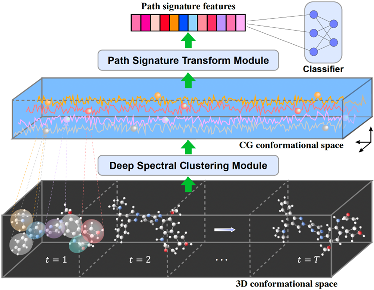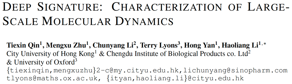 本文介绍了来自香港城市大学李皓亮研究团队所提出的 Deep Signature,一个用于生物大分子复杂运动表征学习的深度学习框架。该框架能够高效地表征分子构型的动态变化,并适用于多种下游任务。该论文已接受于 ICLR`2025。