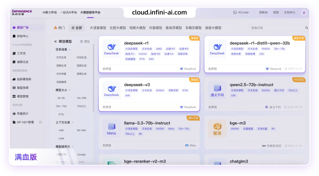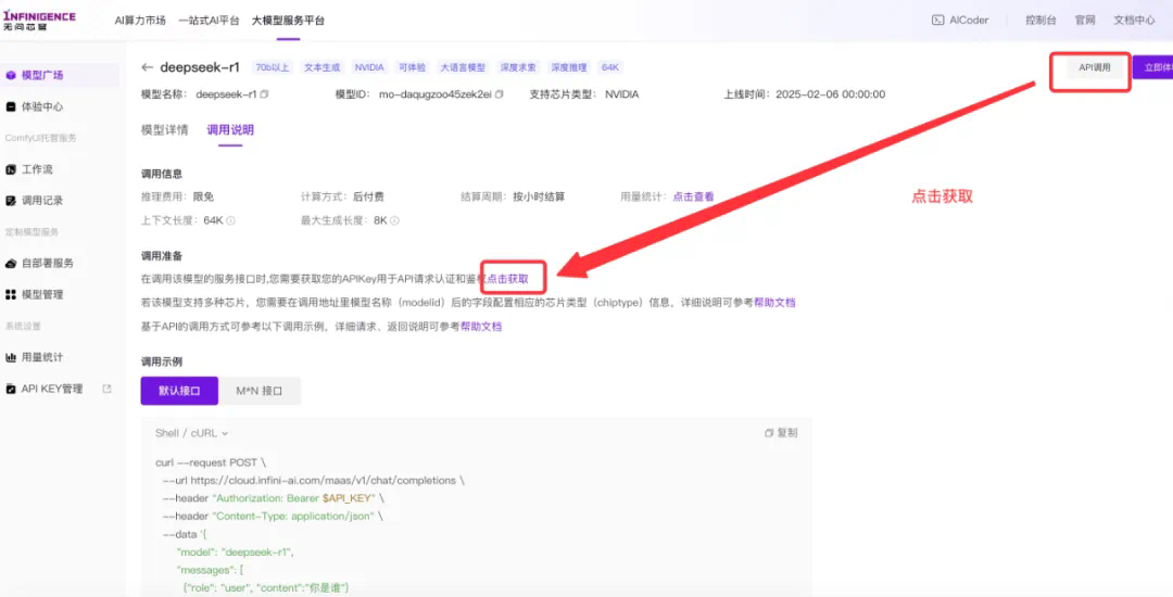 注册账号:登录无问芯穹大模型服务平台 (https://cloud.infini-ai.com/genstudio?source=9B2W)