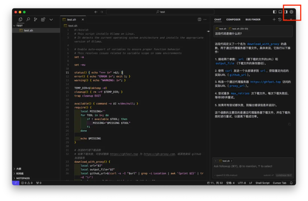 打开 Cursor 设置