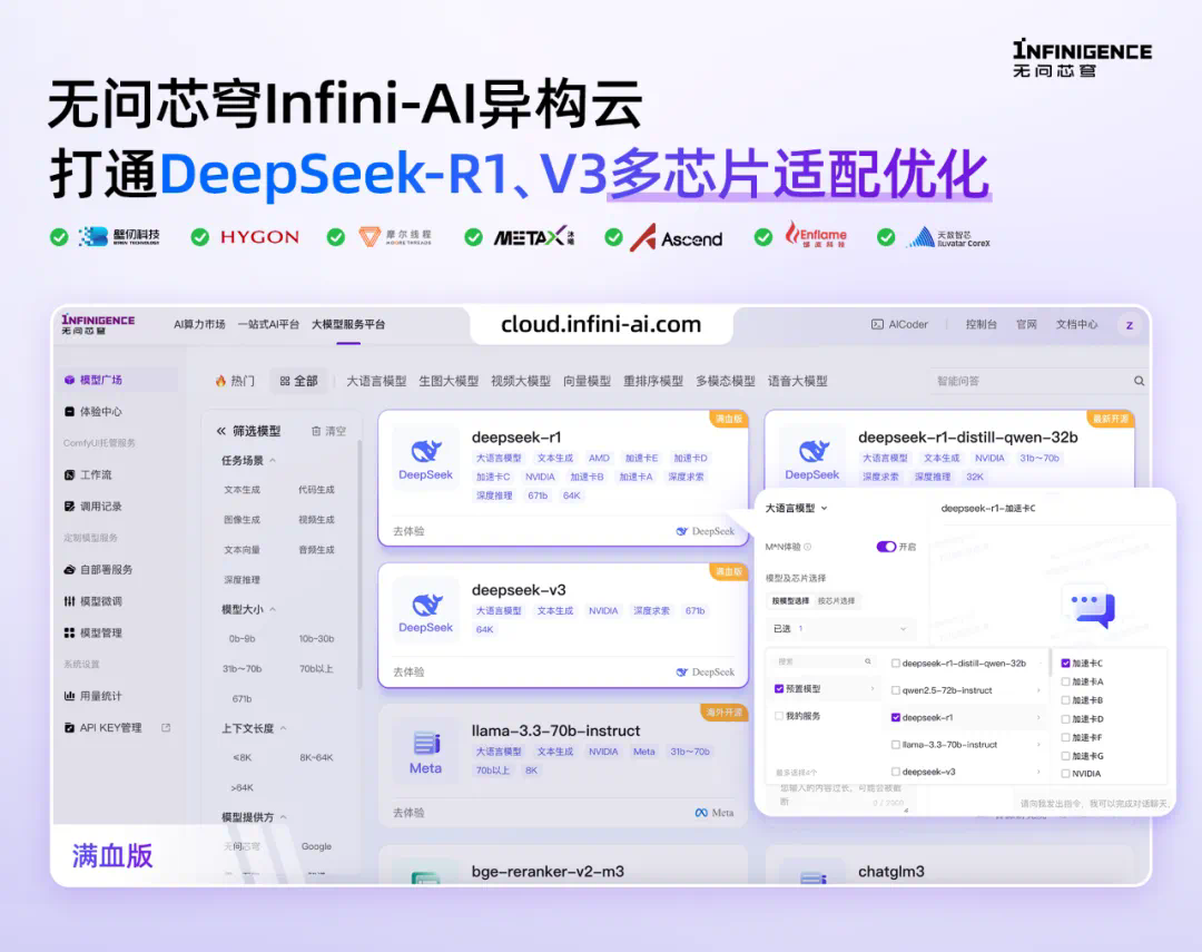 文章来源于互联网:不卡顿、免费的满血版DeepSeek-R1 API,在无问芯穹这里用上了,更有异构算力鼎力相助