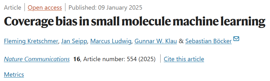 他们的研究结果以「Coverage bias in small molecule machine learning」为题,于 2025 年 1 月 9 日刊登于《Nature Communications》。