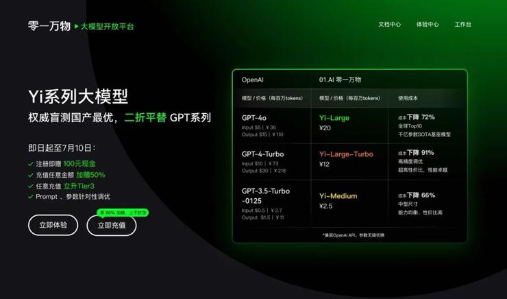 1.Yi API 顶级性能平替 GPT,成本削减最高达91%