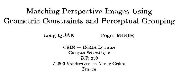 1988 年,在法国国立洛林理工学院(INPL)、国家科学研究中心(CNRS)和国家信息与自动化研究所(INRIA)的共同实验室攻读计算机博士的中国学生权龙,在导师 Roger Mohr 的指导下,写了一篇从几何约束研究室内场景图像匹配的论文。