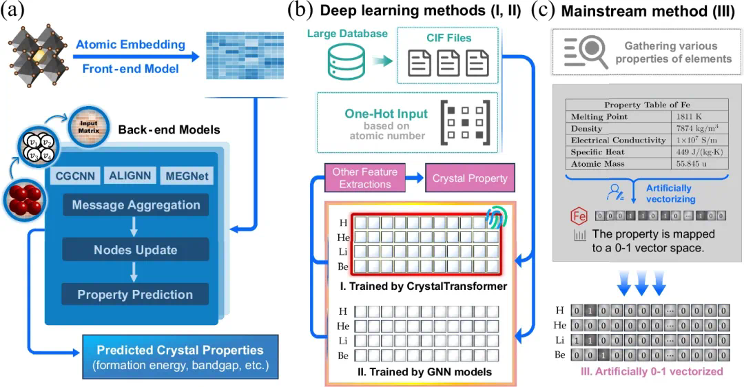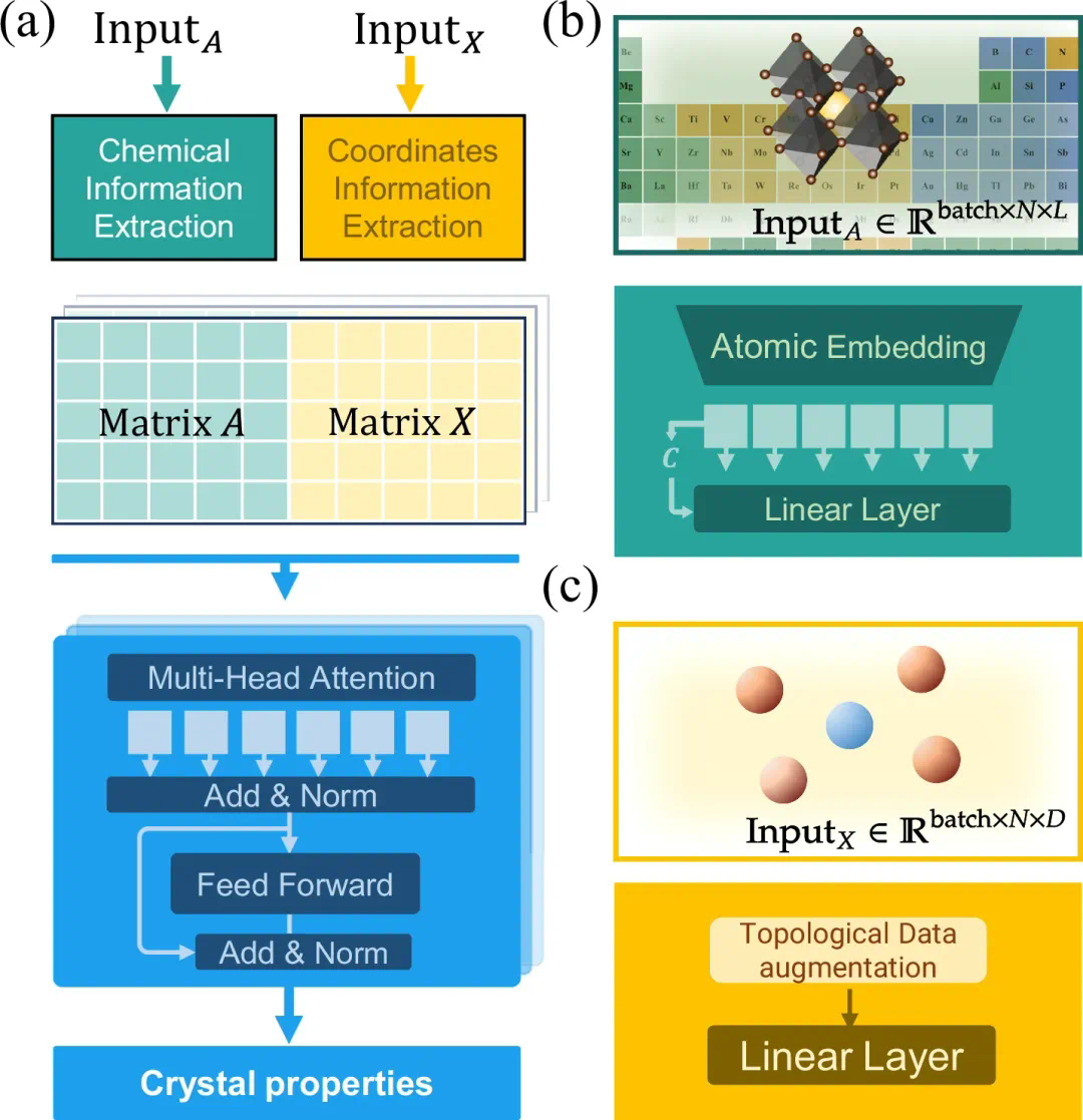 通过机器学习加速新型晶体材料的发现,对于推动从清洁能源到信息处理等各种技术的发展至关重要。用于预测材料特性的机器学习模型需要嵌入原子信息,而传统方法在提高预测精度方面效果有限。