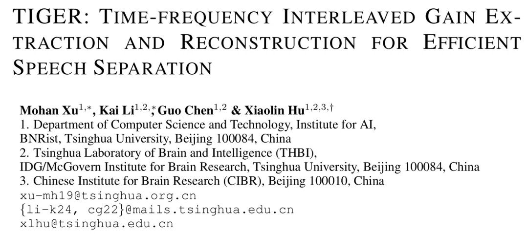 论文标题:TIGER: Time-frequency Interleaved Gain Extraction and Reconstruction for Efficient Speech Separation -