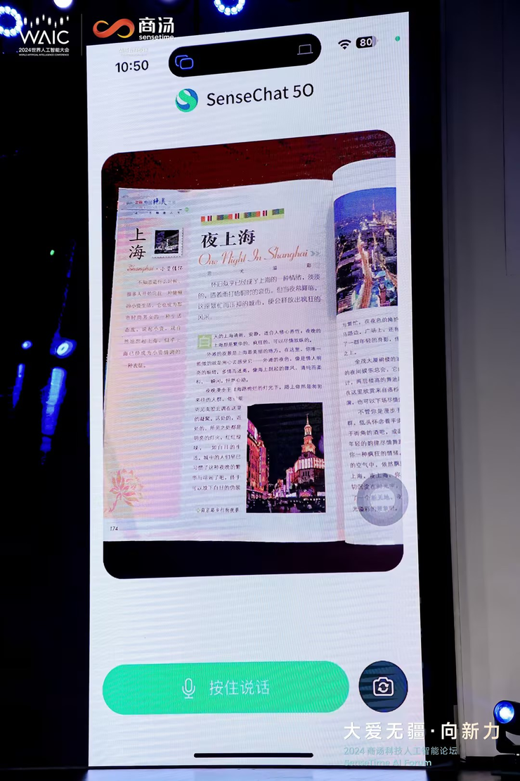再上些难度,随便翻开一本书的任何一页,“日日新5o”都能自动介绍,不是简单的OCR识别文字,而是识别图文给出好理解的总结,这一切在瞬间即可完成,真正做到实时交互。