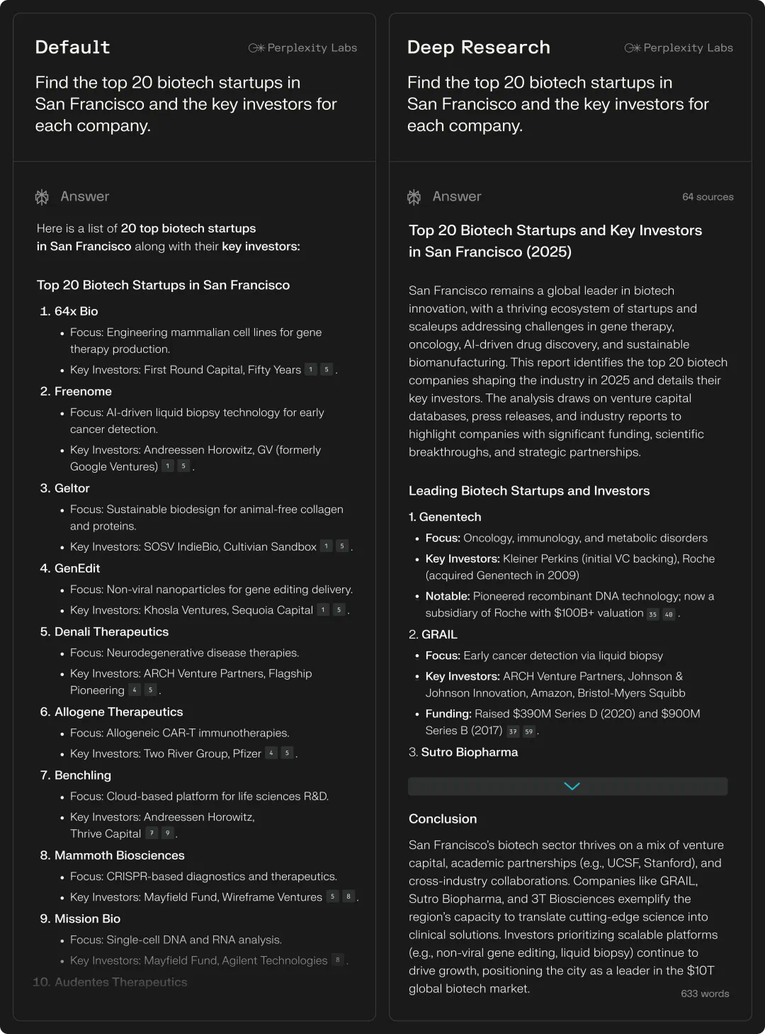 Perplexity Deep Research 还可以对包括健康和技术在内的一系列复杂主题进行专家级分析。