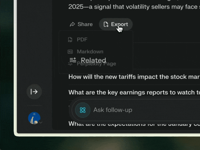 导出与分享:用户可以将最终报告导出为 PDF 或文档,或将其转换为 Perplexity 页面,与同事或朋友分享。