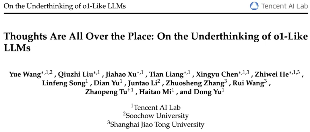 论文题目:Thoughts Are All Over the Place: On the Underthinking of o1-Like LLMs