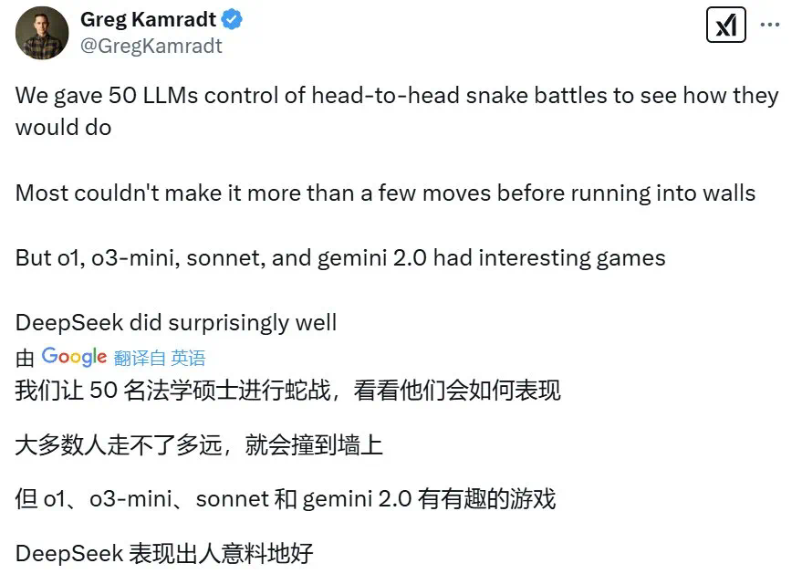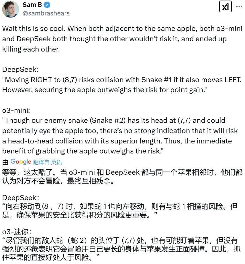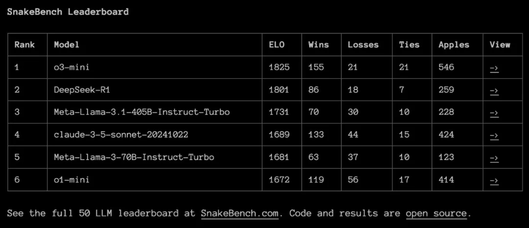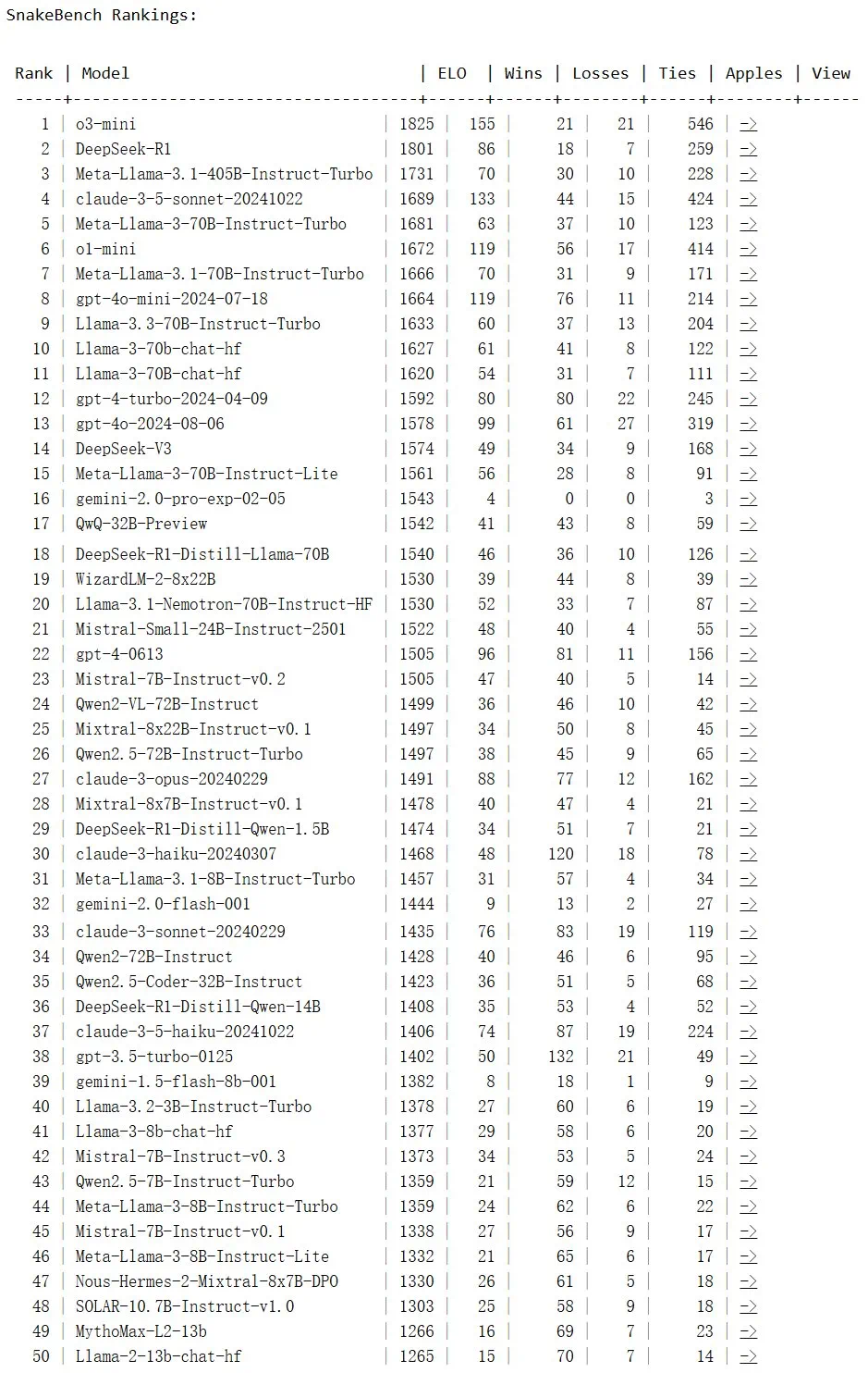 文章来源于互联网:超过o1-mini、逼近o3-mini,DeepSeek-R1在新的贪吃蛇基准上拿下1801分