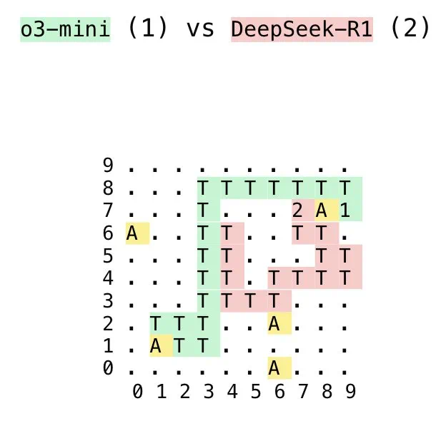 较低档的模型(包括 GPT-3.5 Turbo 和 Haiku)表现不佳,而只有 GPT-4、Gemini 2.0 和 o3-mini 表现出足够的策略游戏推理能力。这说明基本的空间推理仍然是 LLM 面临的巨大挑战。大多数模型都无法跟踪自己的位置,并且会犯明显的错误。 -