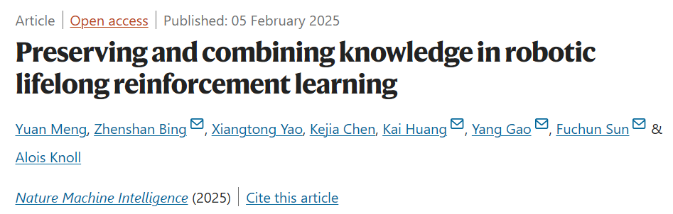 该成果以「Preserving and combining knowledge in robotic lifelong reinforcement learning」为题,于 2025 年 2 月 5 日发布于《Nature Machine Intelligence》。