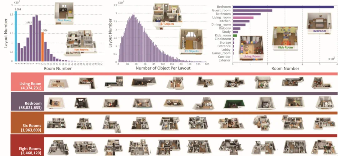 在群核科技探索空间智能过程中,2018 年是一个重要里程碑。那一年,群核科技联合英国帝国理工大学等名校及机构,在 BMVC 会议上发表的论文中推出 InteriorNet—— 当时全球最大的室内场景认知深度学习数据集。在那个 3D 数据贫乏的年代,InteriorNet 包含 1600 万组像素级标签数据,1.5 万组视频数据,总计约 1.3 亿张图像数据,堪称 “3D 界的 ImageNet”,在学术界引发巨大反响。