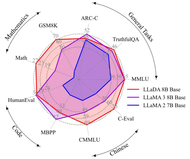 文章来源于互联网:语言模型新范式:首个8B扩散大语言模型LLaDA发布,性能比肩LLaMA 3