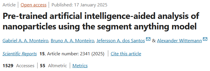 该研究以「Pre-trained artificial intelligence-aided analysis of nanoparticles using the segment anything model」为题,发表于 2025 年 2 月 17 日的《Scientific Reports》。