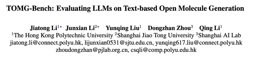 科学家提出了一个新的基准测试——TOMG-Bench,用于评估 LLM 在分子领域的开放域生成能力。
