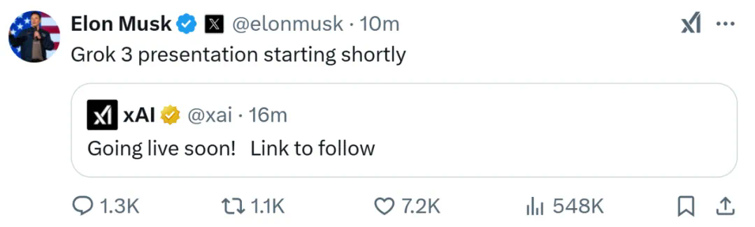 马斯克 xAI 的最新旗舰大模型 Grok3 终于现身了!