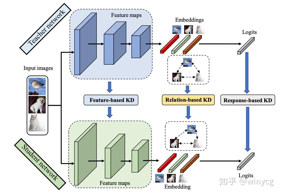Toggle1. Categories of response-based, feature-based, and relation-based knowledge distillation. (基于响应、特征、关系的知识蒸馏划分)