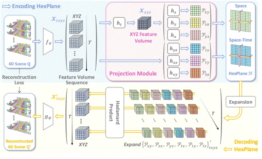 代表特征通道数。VAE 将 4D 数据进行降维成 HexPlane: