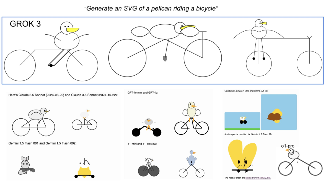 让 AI 用代码画鹈鹕骑自行车,就像让它闭着眼睛拼乐高——生成的矢量图坐标歪七扭八,活脱脱抽象派赛博艺术。