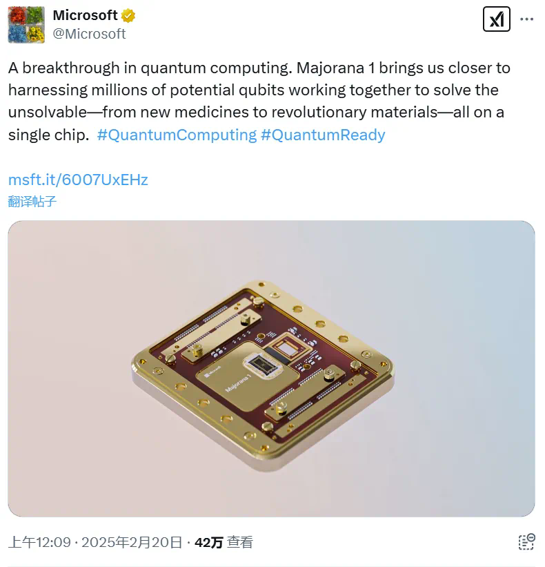 文章来源于互联网:量子计算里程碑!微软单芯片可百万量子比特,Nature研究爆火