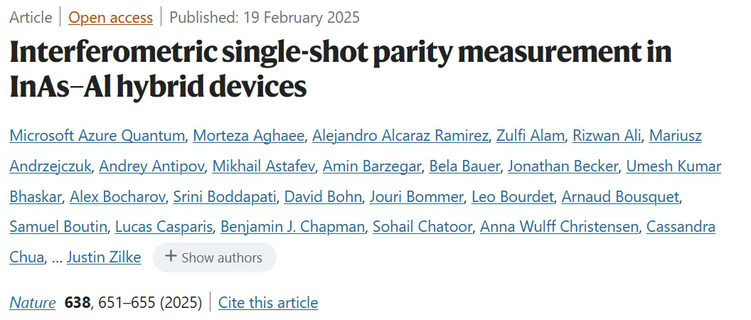 论文标题:Interferometric single-shot parity measurement in InAs–Al hybrid devices -