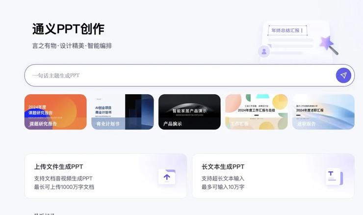 其次是长文本能力,今年 3 月,在各大 AI 大模型企业在卷超长文本能力时,通义千问宣布向所有人免费开放 1000 万字的长文档处理功能,直接从原先的百万级跳跃至千万级,成为全球文档处理容量第一的 AI 应用,而这也保证了在创作 PPT 时,可以支持超长文档、PPT、PDF、网页等内容输入形式。