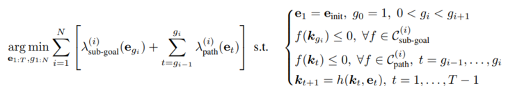 对于每个阶段,优化算法需要找到满足子目标约束的末端执行器姿态,以及实现这些子目标的路径。