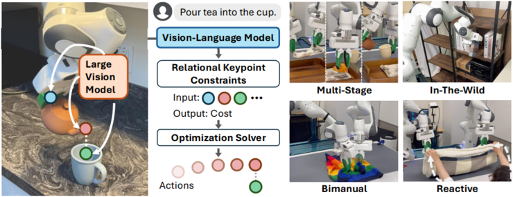 李飞飞团队提出了一种名为关系关键点约束(ReKep)的方法,用于机器人操作。