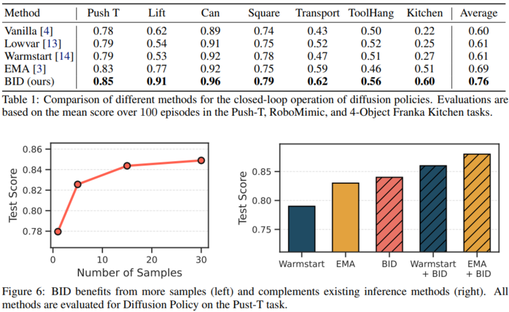 这种综合方法增强了长动作序列的时间一致性,同时保持了适应动态环境变化的灵活性。BID在各种机器人任务中显著优于现有的闭环方法,代表了机器人系统学习和执行过程的重大改进。