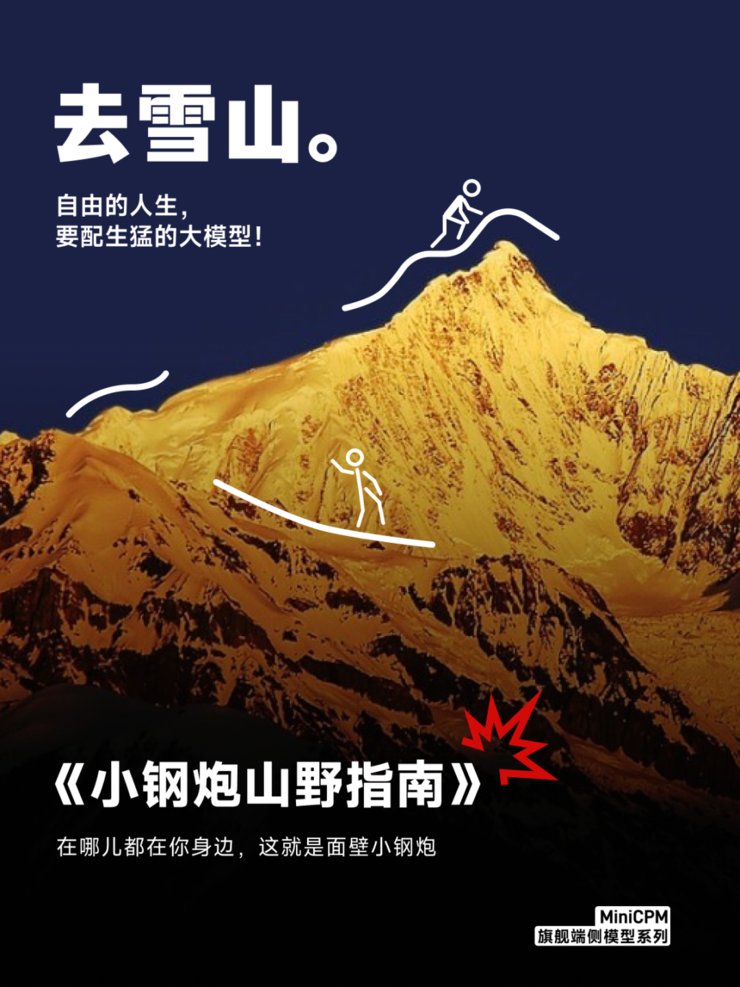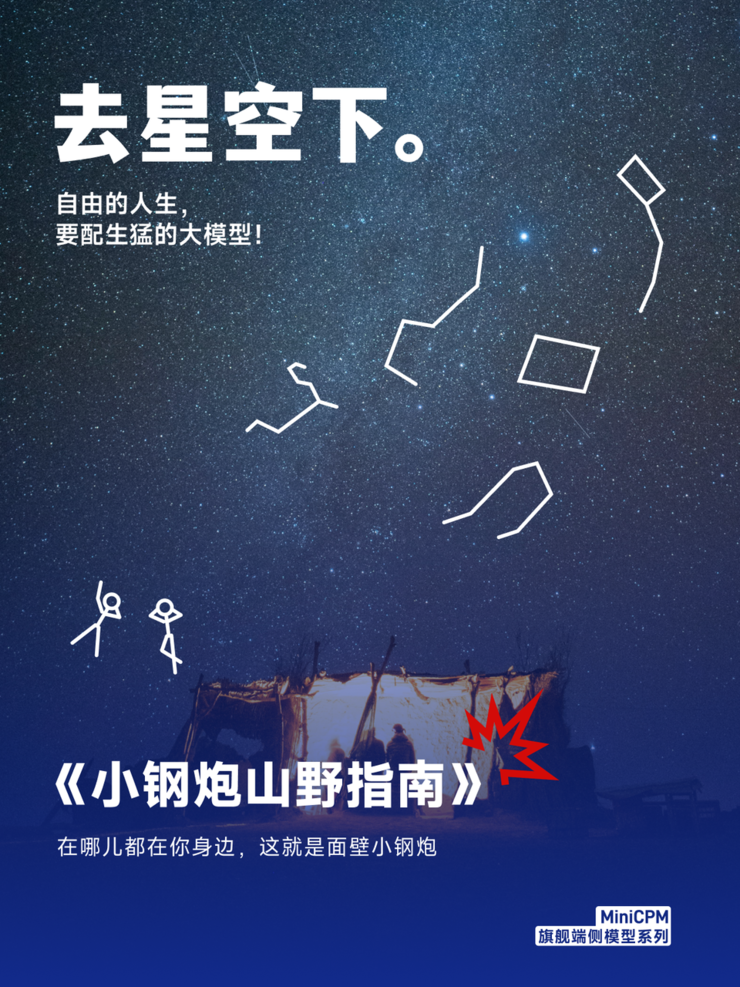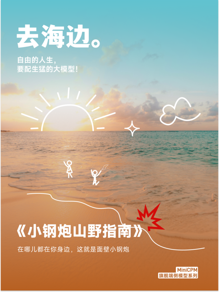 相比云端模型,面壁小钢炮 MiniCPM 系列模型有一颗陪你行走世界的大心脏,天然具有弱网、断网可用、超低时延、数据隐私安全等本地优势。无论是陪你闯荡精彩远方、勇敢探索,还是将眼前的琐碎默默打理与守护,MiniCPM都是值得信任的大模型好朋友。
